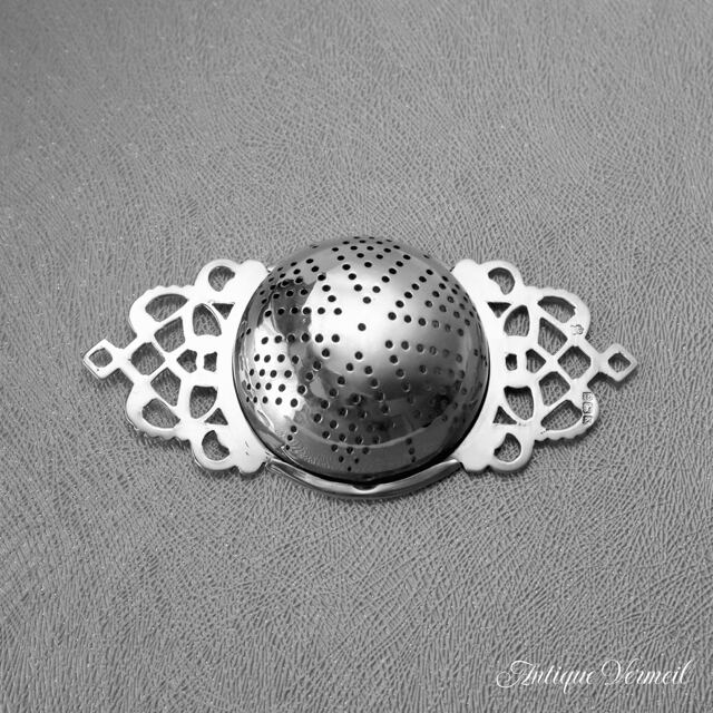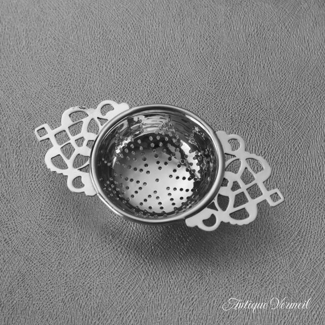 とても人気のある透かし細工のティーストレーナーで英国銀器の定番ともいえるモデルです。