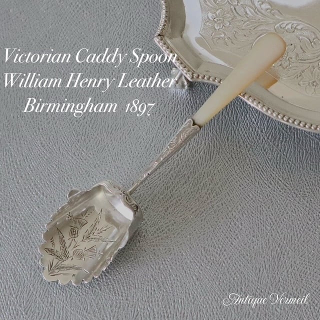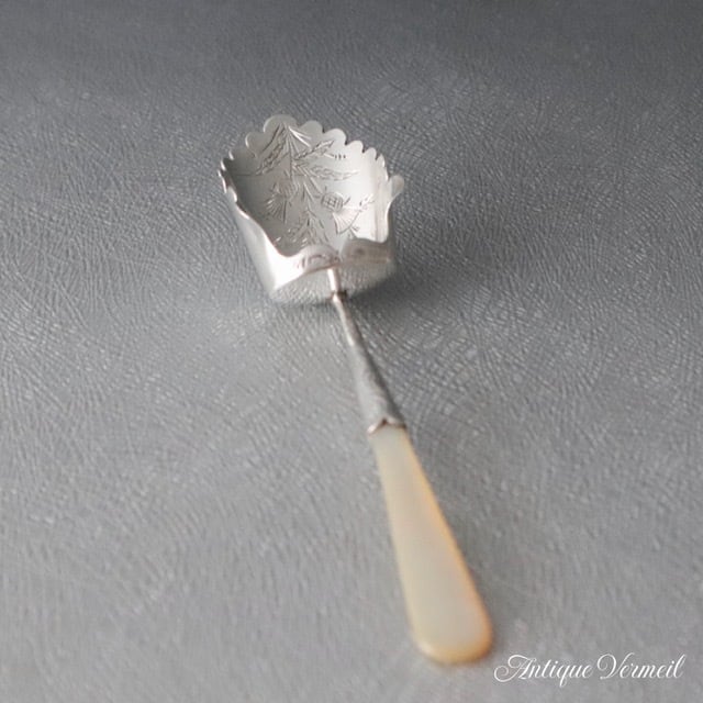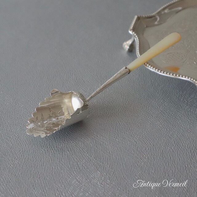 英国銀器 ヴィクトリアン 白蝶貝 キャディースプーン William Henry Leather 1897年(銀925)