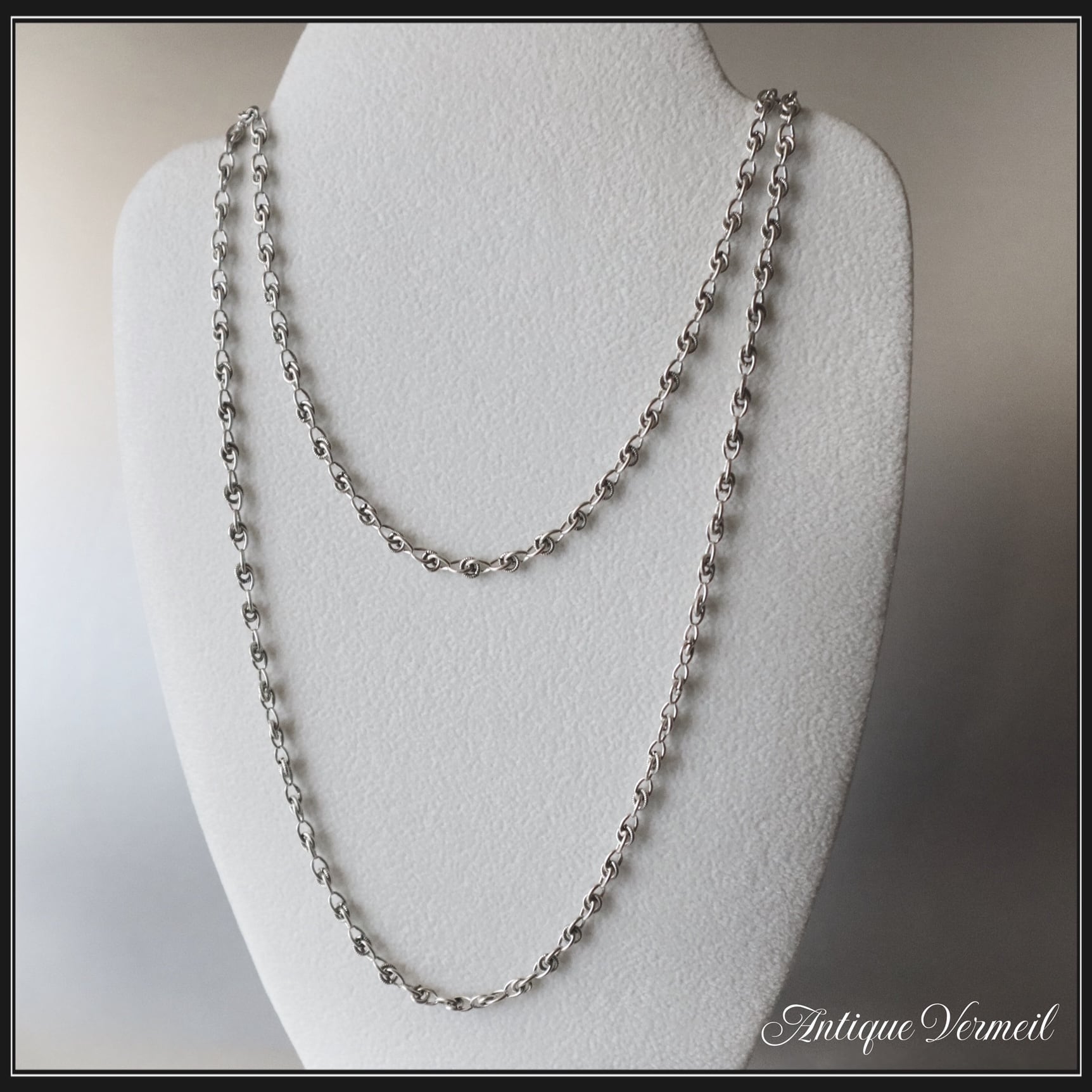 フランス・アンティークシルバ- チェーン ロングネックレス(銀800) 128cm