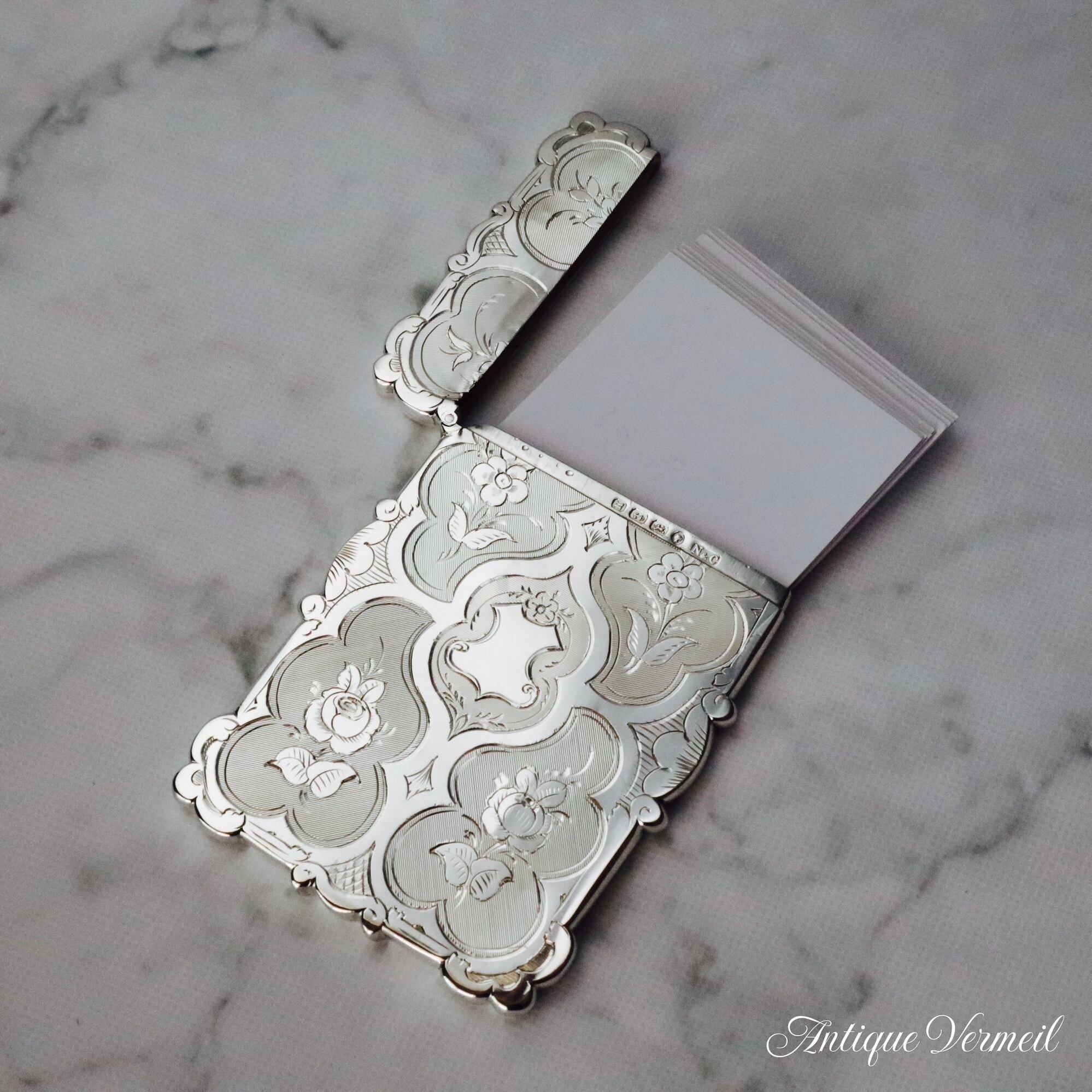 英国アンティークシルバー フローラル文様のカードケース Neill & Cook 1859年(銀925)