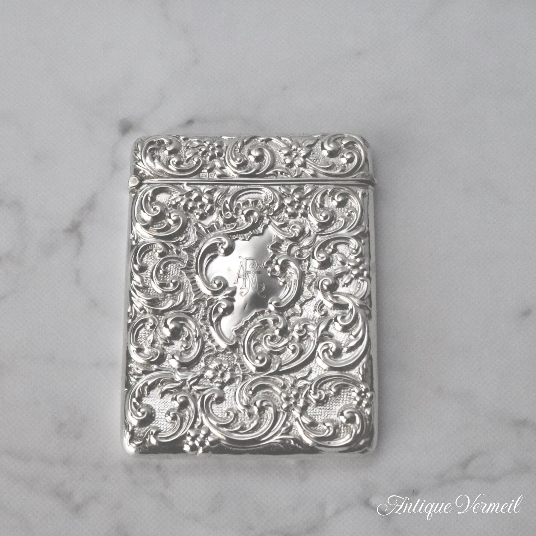 英国銀器 ロカイユ装飾のカードケース Henry Matthews 1903年(銀925)