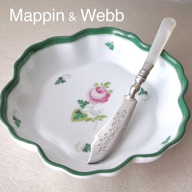 英国銀器 白蝶貝 純銀バターナイフ Mappin & Webb 1961年(銀925)