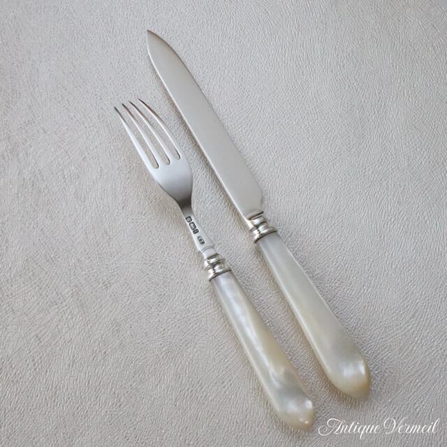 英国銀器 白蝶貝デザートナイフ&フォーク Thomas Levesley 1911年(銀925)